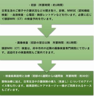 当院の認知症外来のながれは以下のようになっております。ご不明点がございましたらお気軽にお問合せください。