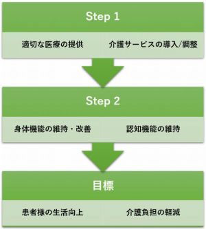 アルツハイマー病をはじめ、多くの認知症で認知機能の改善は困難ですが、薬による治療だけでなく、生活全体に対するアドバイスによって『いつもと変わらない日々』が一日でも長く続くように努めます。